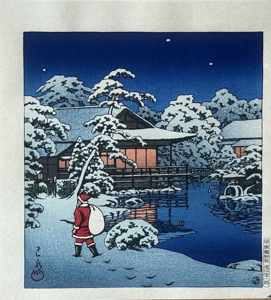 Hasui Kawase : Père Noël dans la neige - Estampe japonaise Shin Hanga