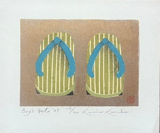 Kunio Kaneko : boy's Geta - Estampe japonaise contemporaine