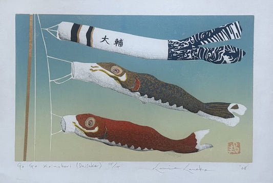 Estampe japonaise originale de Kunio Kaneko : Go, go koinobori Daisuke