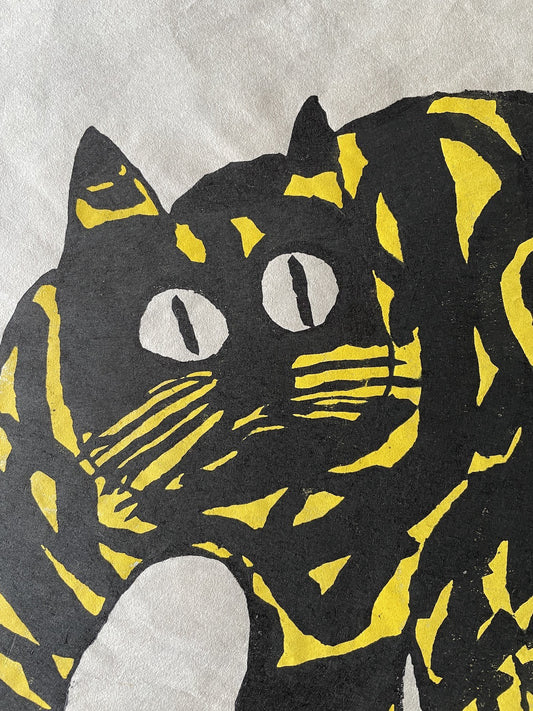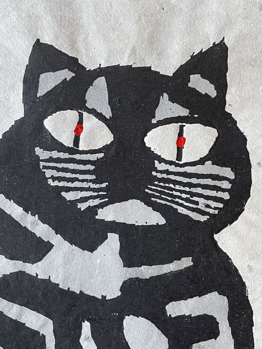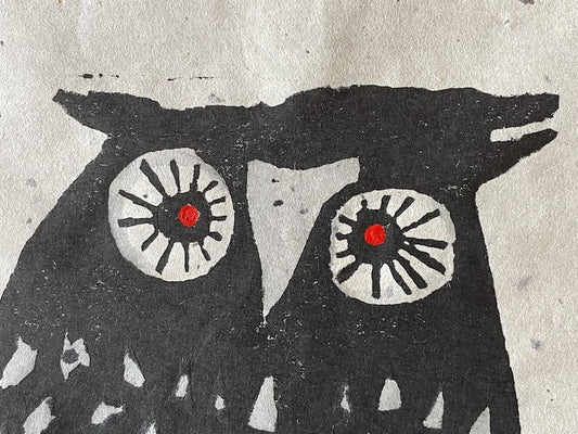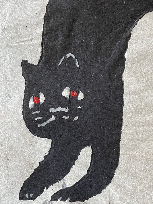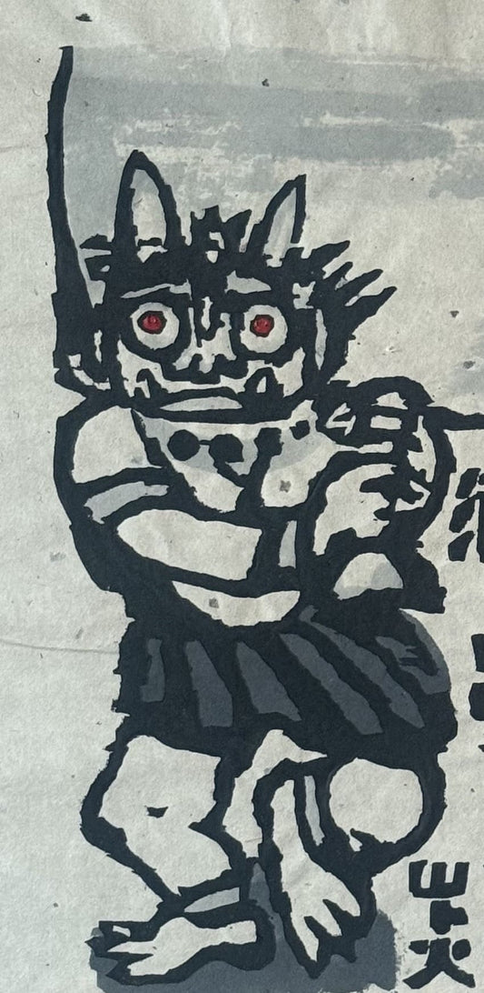 Iwao Akiyama (1921–2014) est un maître de l’estampe japonaise contemporaine, connu pour ses gravures sur bois puissantes et profondément spirituelles. Ancien moine zen et disciple du célèbre Munakata Shikō, il développe un langage visuel direct, expressif, ancré dans la tradition du sōsaku hanga. Ses œuvres, souvent réalisées en noir et blanc, mêlent figures animales stylisées, personnages méditatifs et calligraphies inspirées de haïkus, souvent ceux du poète Santōka.