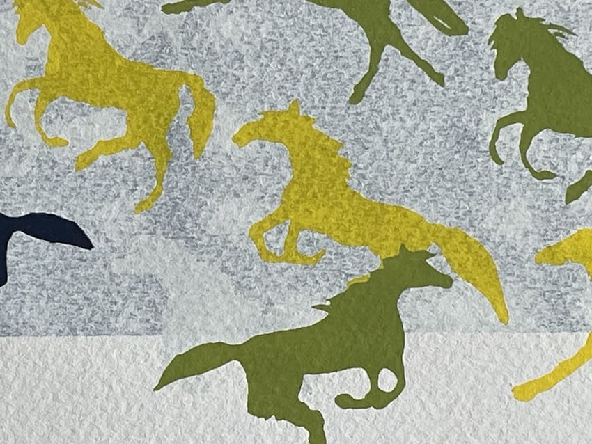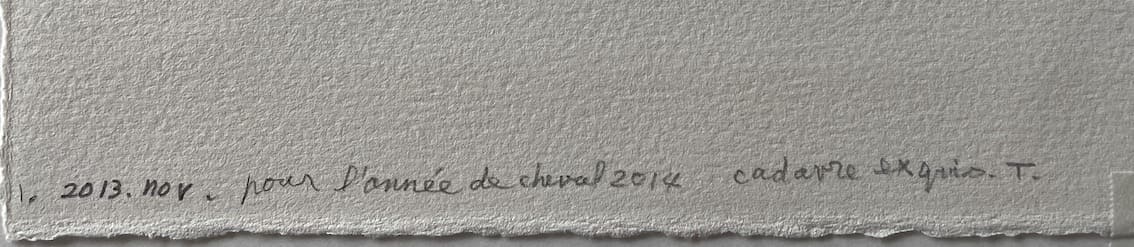 Miharu Shiota est connue pour sa technique précise et minutieuse. L’estampe « Cheval de lune » reflète son habileté à fusionner des techniques traditionnelles avec une vision contemporaine, utilisant l’espace et la lumière pour enrichir le récit visuel.