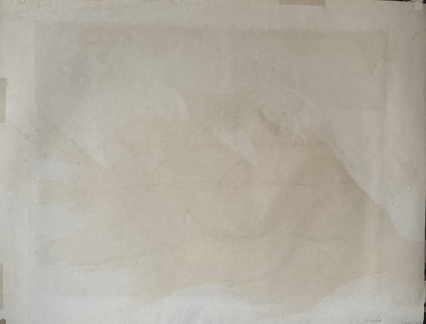 Traces d'anciens encadrements au dos. Différentes numérotations au crayon figurent également au dos. Voir photos